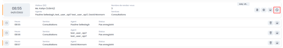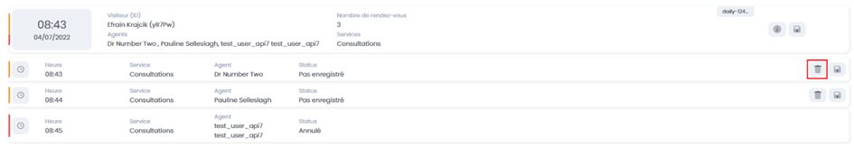 To cancel all appointments of a visitor, click the "cancel" icon on the right: