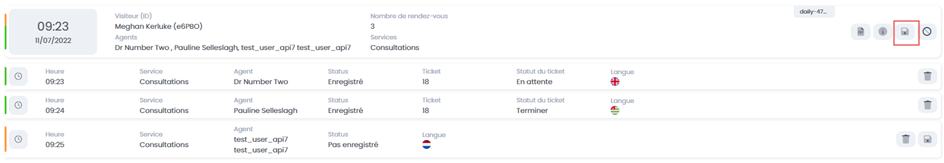 You can view the history of an appointment by clicking this icon: