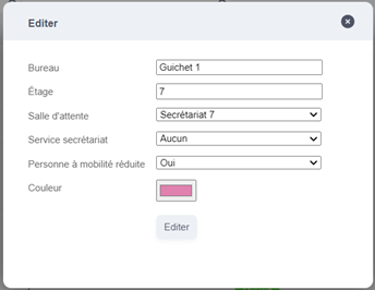 Je kunt vervolgens een balie aanmaken door haar een naam te geven en de verdieping en de wachtzaal te specificeren waaraan ze is gekoppeld. Klik daarna op "Toevoegen".