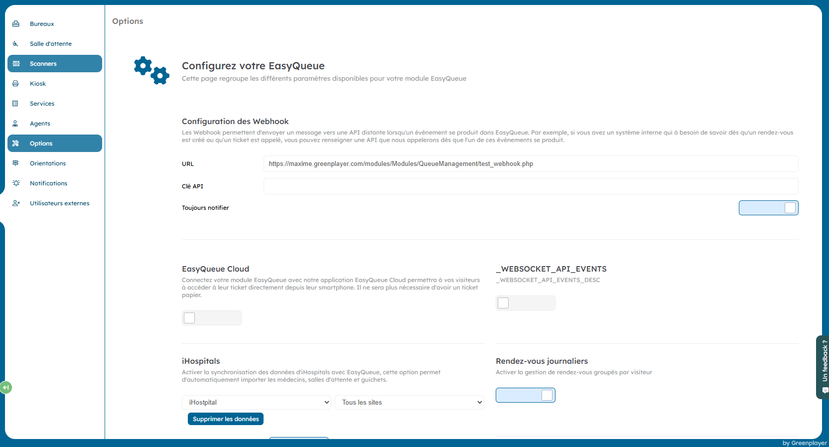 URL van de externe API die wordt aangeroepen wanneer een EasyQueue-gebeurtenis optreedt (ticket aanmaken, oproep, afspraak aanmaken, enz.).