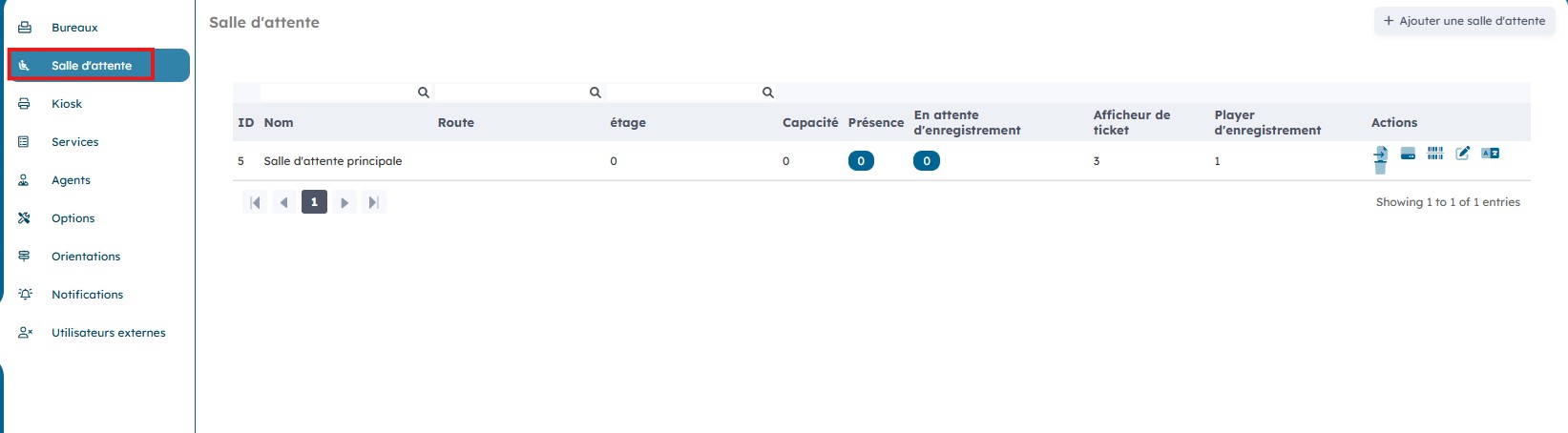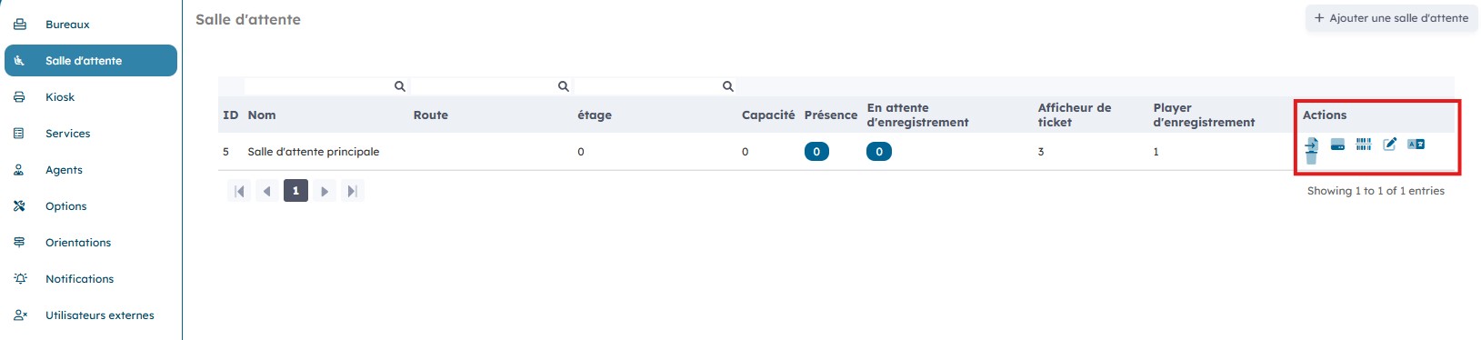 Vous pouvez ensuite modifier, configurer et même supprimer les salles d’attente créées en cliquant sur les icônes « Actions ».