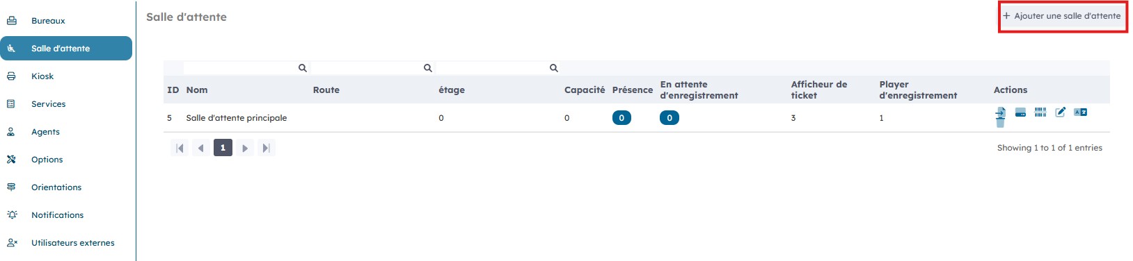 Vous pouvez créer une nouvelle salle d’attente en cliquant sur « Ajouter une salle d’attente ».