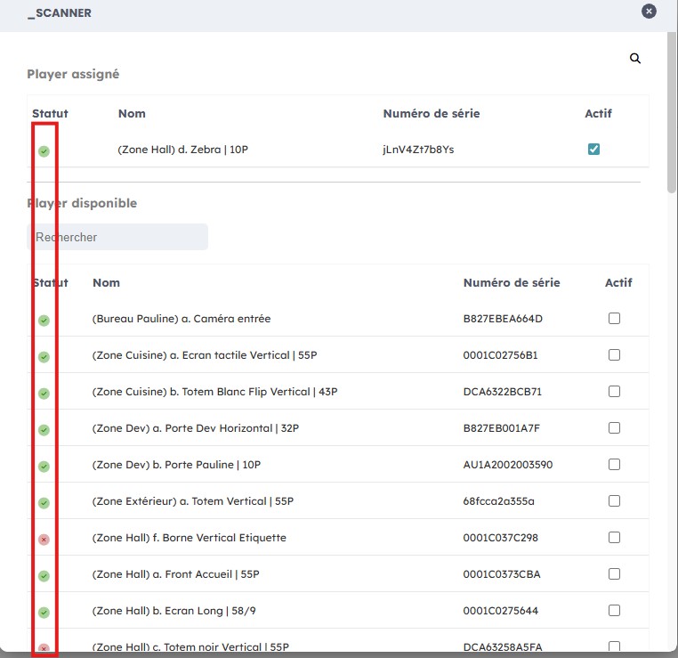 En cliquant sur l’icône « Scanner », vous avez accès à une fenêtre qui vous donne des informations sur le statut de chaque scanner.