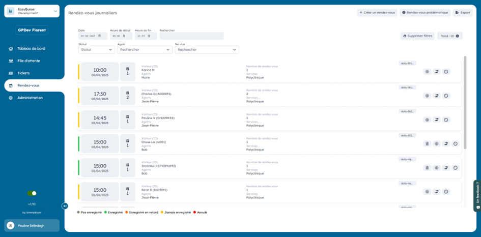 Différents filtres sont mis à votre disposition pour vous permettre de trouver plus facilement un rendez-vous.