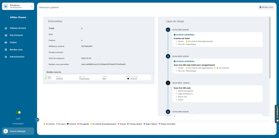 Vous pouvez consulter l’historique d’un rendez-vous en cliquant sur cette icône :