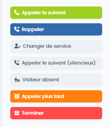 - Fonctionnalité : Ce bouton remet le visiteur dans la file d’attente afin de pouvoir le rappeler plus tard.